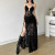 欧美风夏季新款女装纯色修身高腰时尚V领吊带纱网连衣裙