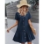 2025夏单排扣女士连衣裙宽松口袋连衣裙荷叶边下摆休闲短袖