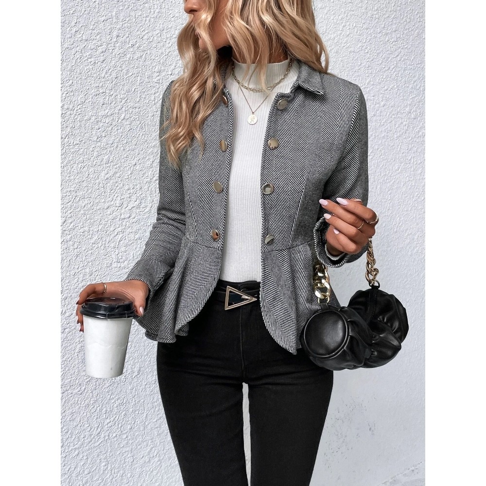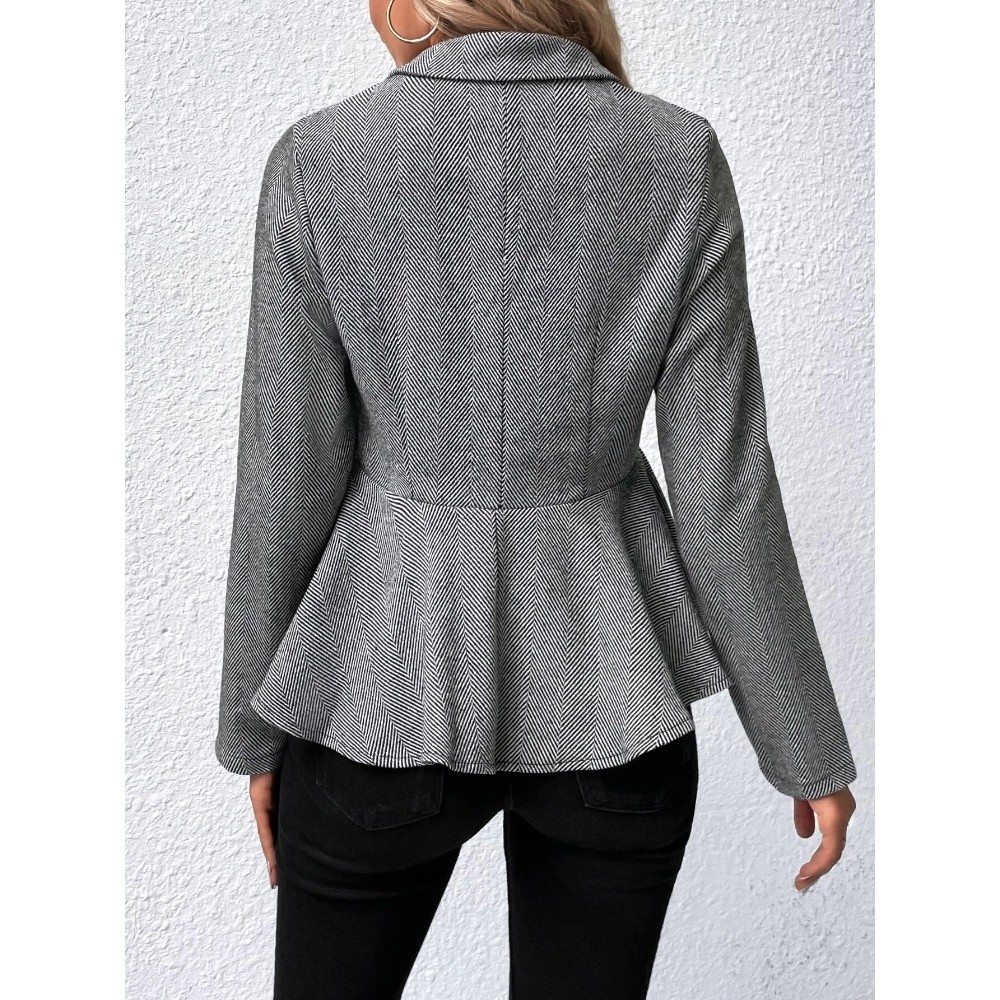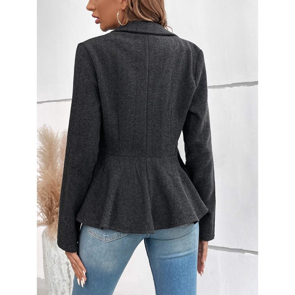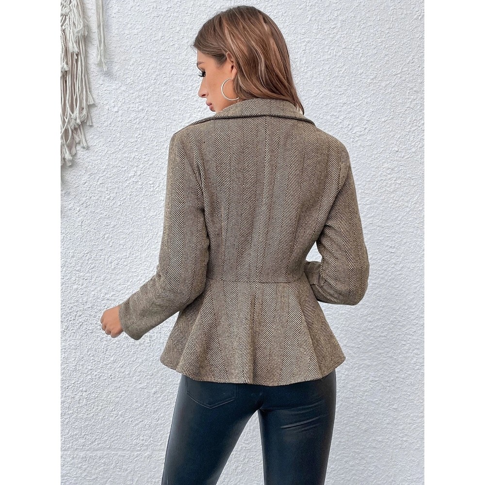 Women's Jacquard Notch Lapel Double Breasted Blazer Business Casual Peplum Hem Jacket Fitted Waist Office Blazer Dressy Open Front Herringbone Suit Jacket