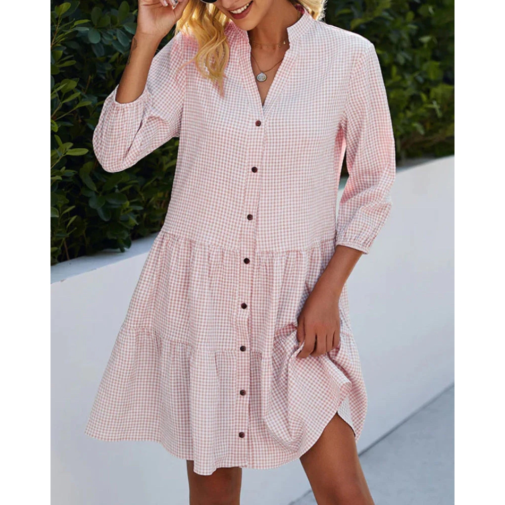 这款连衣裙采用优质涤纶纤维制成,轻盈耐用。该面料将透气性与光滑质地相结合,非常适合过渡季节,确保时尚明亮的外观,同时提供舒适轻盈的穿着体验 V领和半袖的修身设计打造出经典而多变的轮廓,而前扣门襟则增添了一丝复古魅力。A字型剪裁巧妙收紧腰部,轻轻张开,凸显各种体型,具有瘦身效果。永恒的格子图案为预科生增添了时尚气息,使其成为休闲和半正式造型的多功能单品。褶边下摆柔和了连衣裙的结构化线条,增添了浪漫和俏皮的氛围