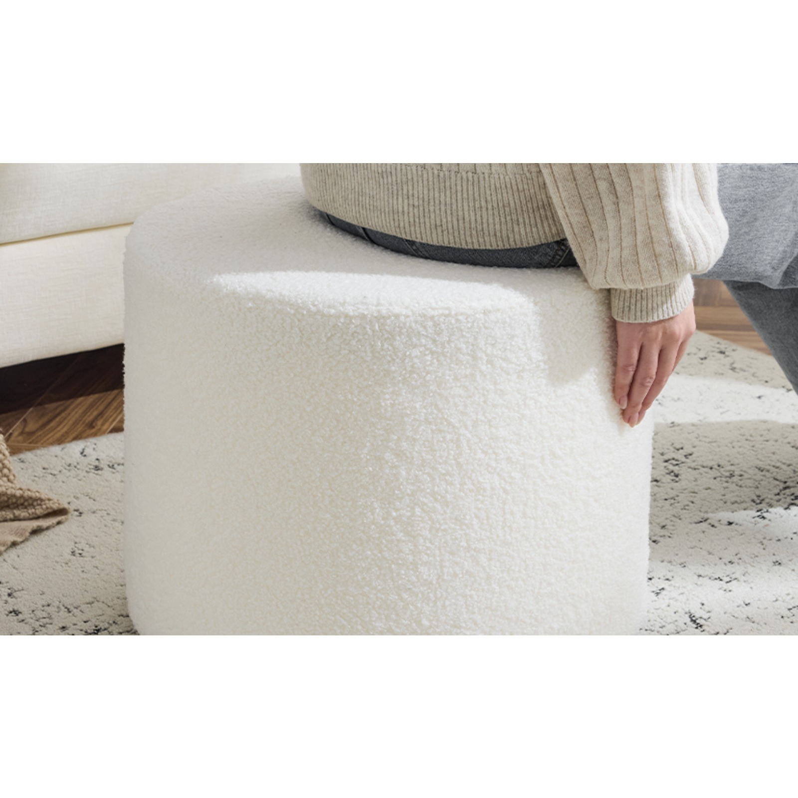 TIMELESS AND ELEGANT DESIGN:This pouf ottoman features a classic cylindrical design that effortlessly complements any setting. It adds a touch of elegance and charm to any room. It's a stylish and functional addition to your home, perfect for the living room, bedroom, nursery, kids' room, or a cozy reading nook.