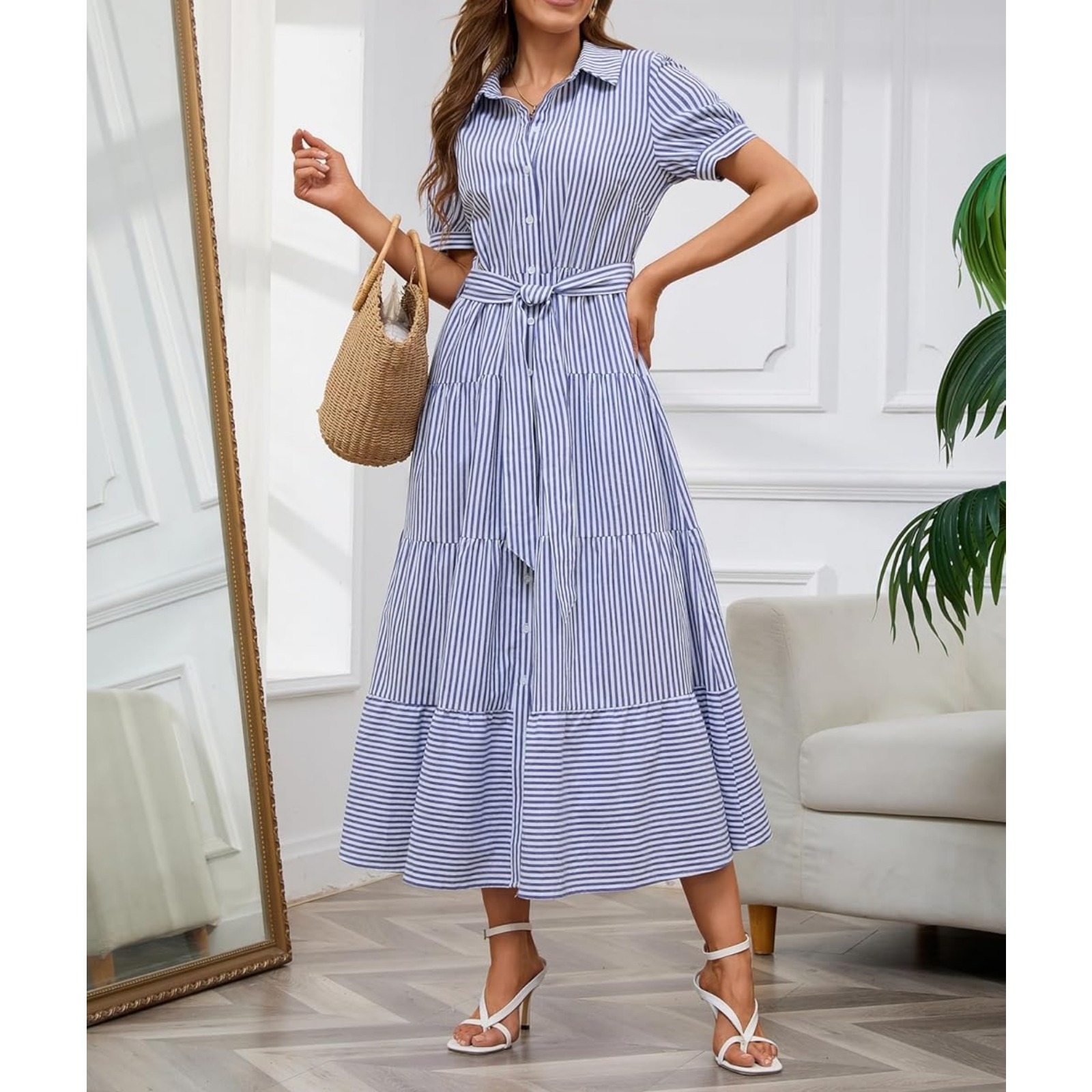 STYLE】summer dresses for women 2025/ beach dress/ beach cover ups for women/ vacation dress/ boho dress/ blue and white striped shirt dress/ classy striped maxi dress/ tie wasit shirt dress/ button down dress with belt/ a line dress/ tiered swing dress/ cute ruffle dress/ loose fit shirt dress/ comfy lounge dress/ women's casual dresses/ formal dresses for women/ cocktail dresses for women/ party dresses for women/ wedding guest dresses for women/ flowy dresses for women