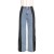 时尚拼接三条纹阔腿牛仔长裤女装新款休闲高腰弹力直筒裤