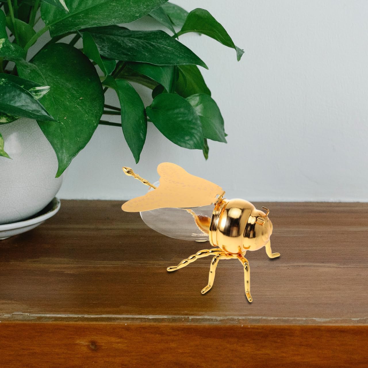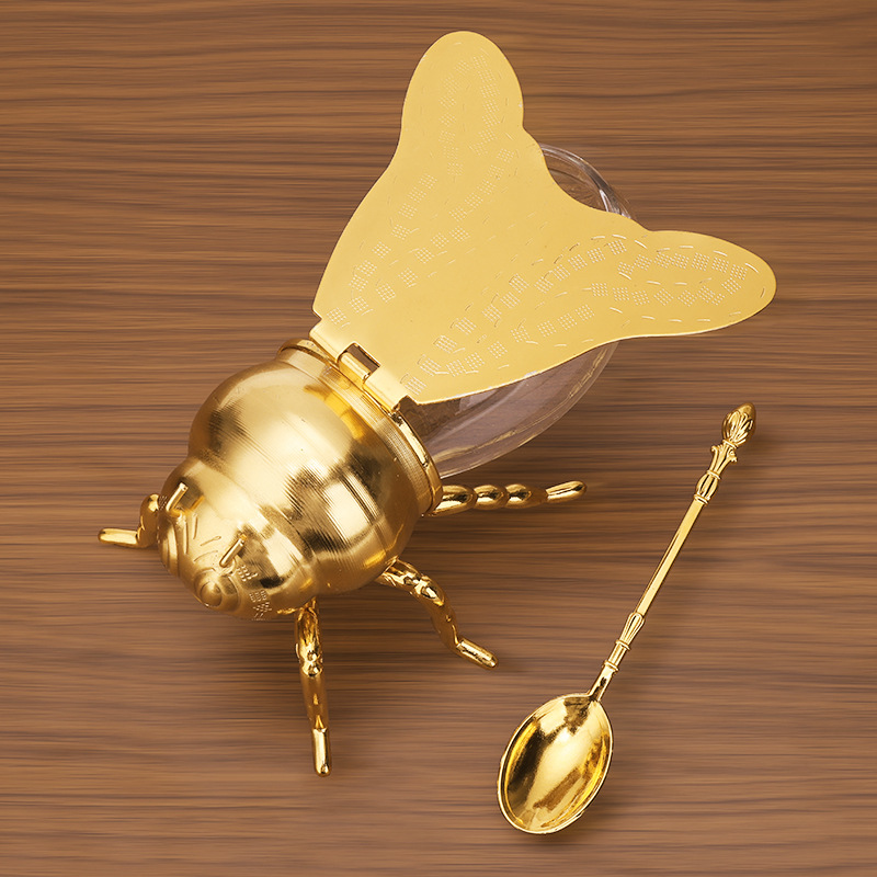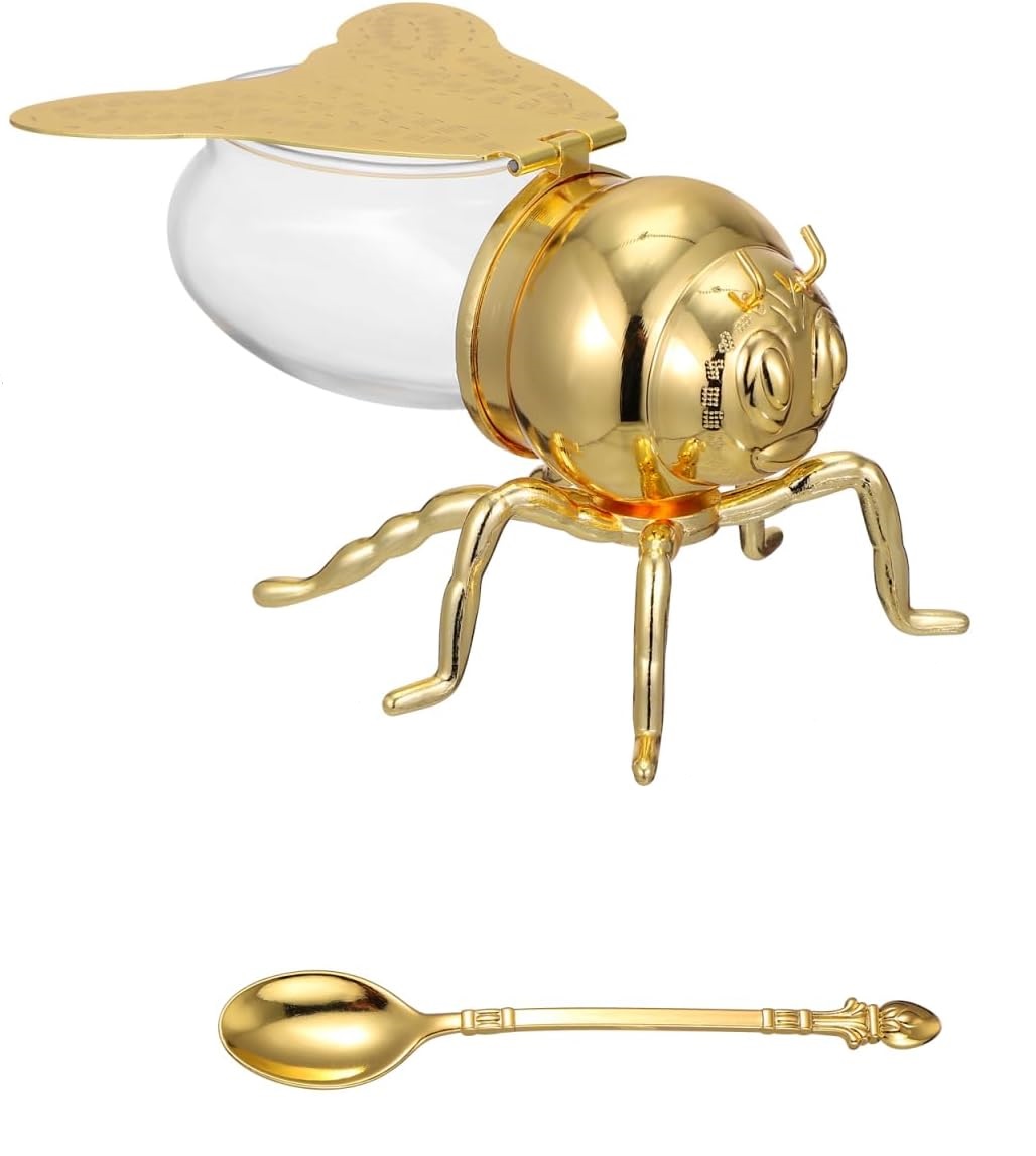 Bee Shaped Glass Honey Jar Dispenser with Dipper Spoon – Honey Pot, Bee Honey Holder, Syrup Server, Spice Container & Sugar Jar, Dispenser Tea Caddy for Kitchen Decor & Gift