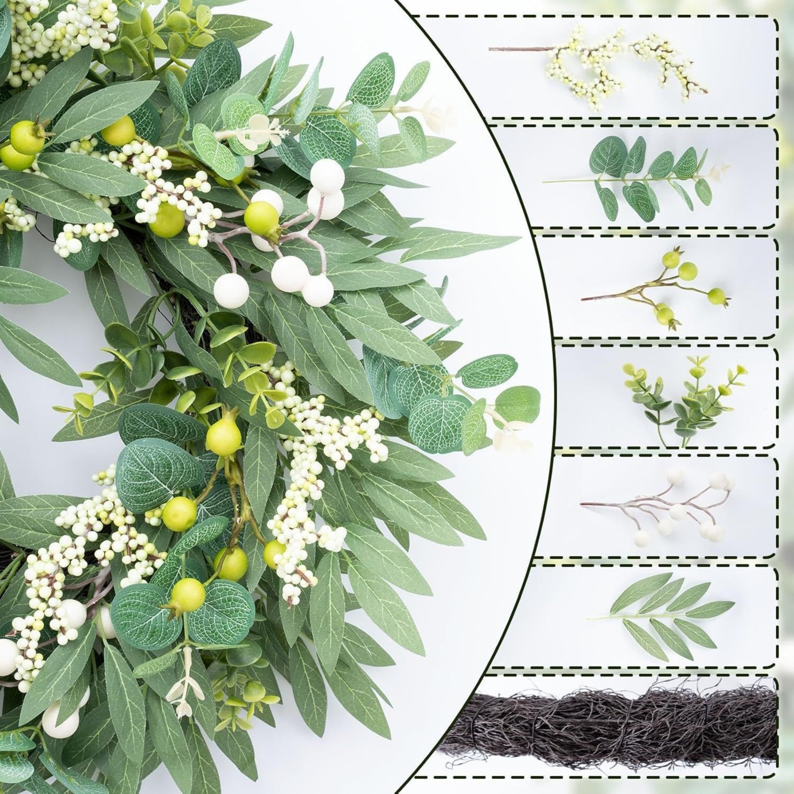Eucalyptus wreath Artificial Garland Olive Leaf Berries front Door Hanging home decorations Window Wall Hanging Decor All Year Round Wreath