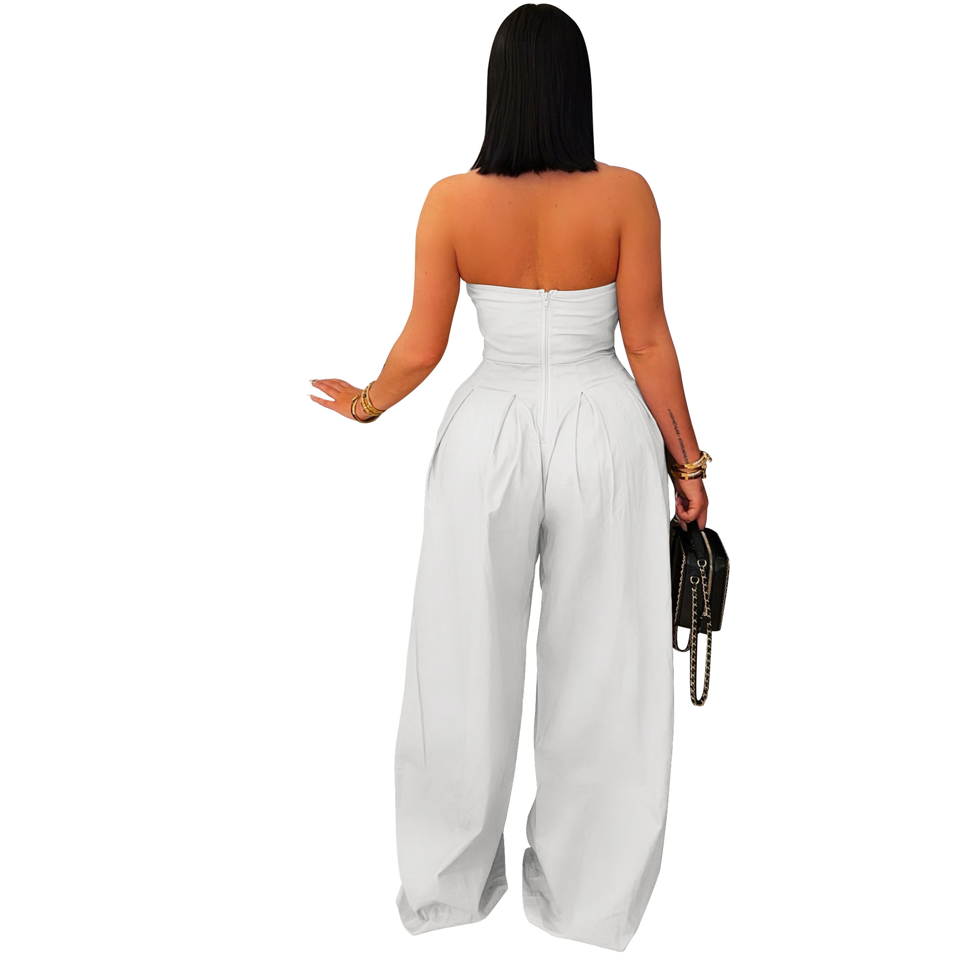 Women's Elegant Strapless Button Tube Top Wide Leg Jumpsuit Sexy Sleeveless Shoulder Off Ruched Romper One Piece Outfit Overalls Y2K Summer Casual Daily Vacation Cargo Jumpsuit