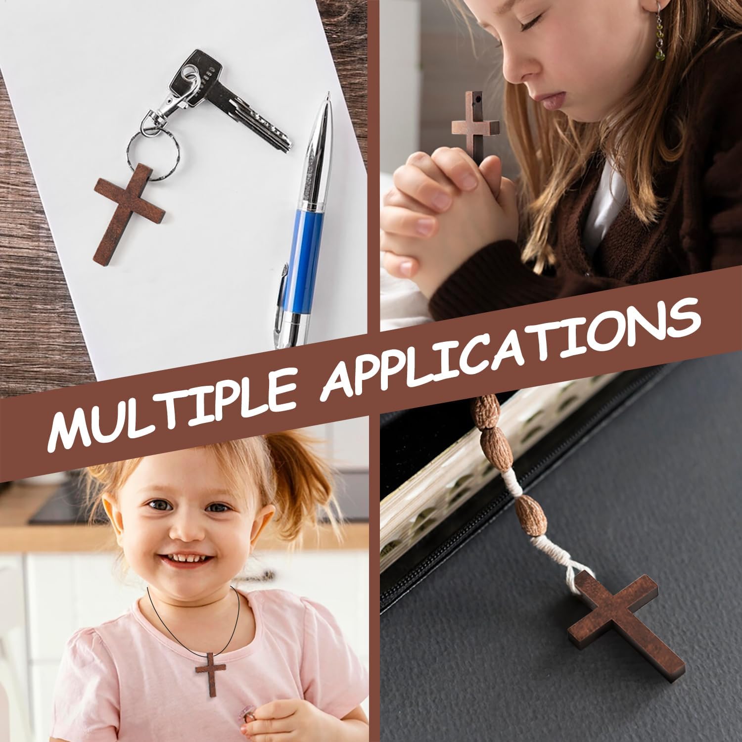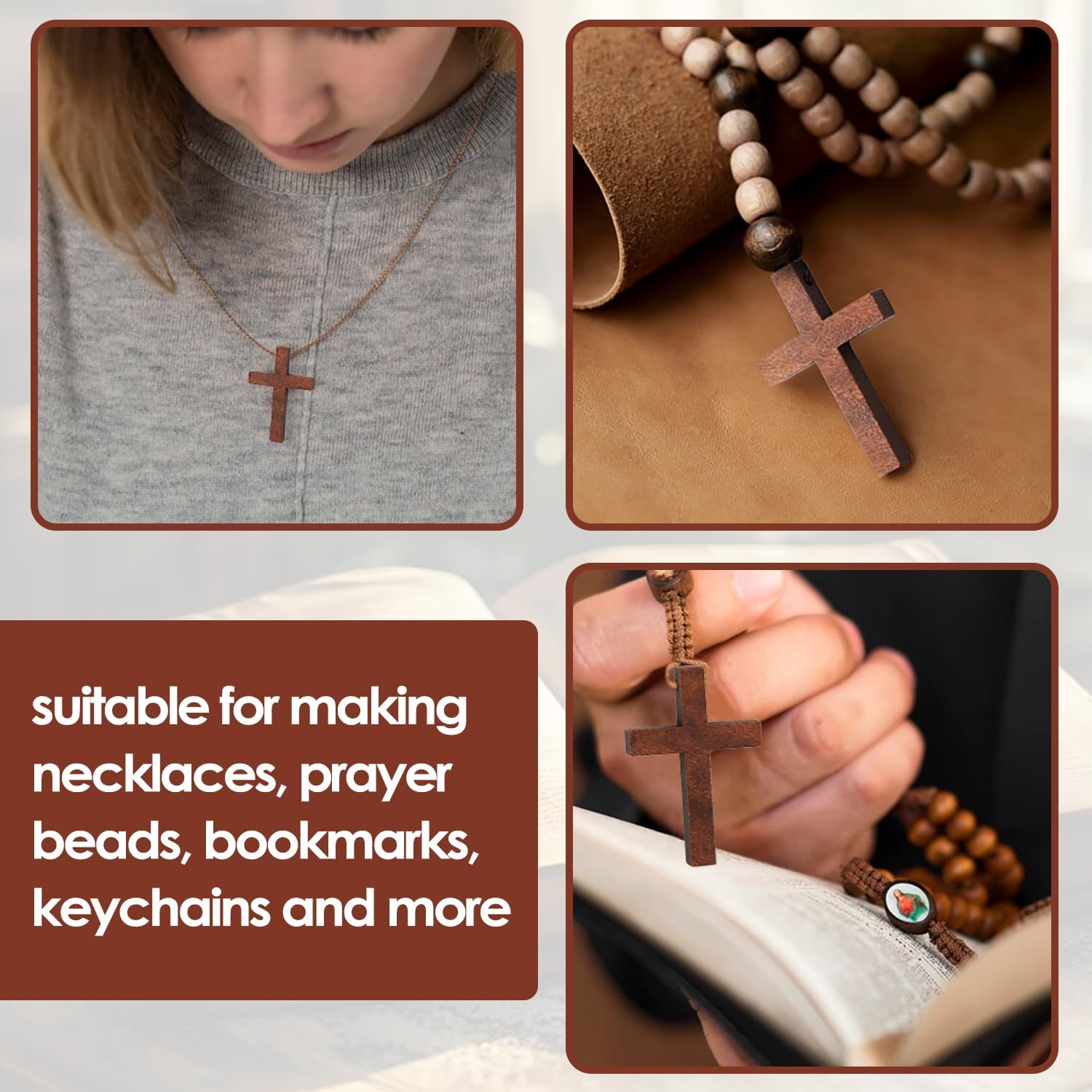 With your styles, you can apply these wooden crosses to make necklaces, bracelets, earrings, pendants, hanging ornaments, keychains, and other crafts.